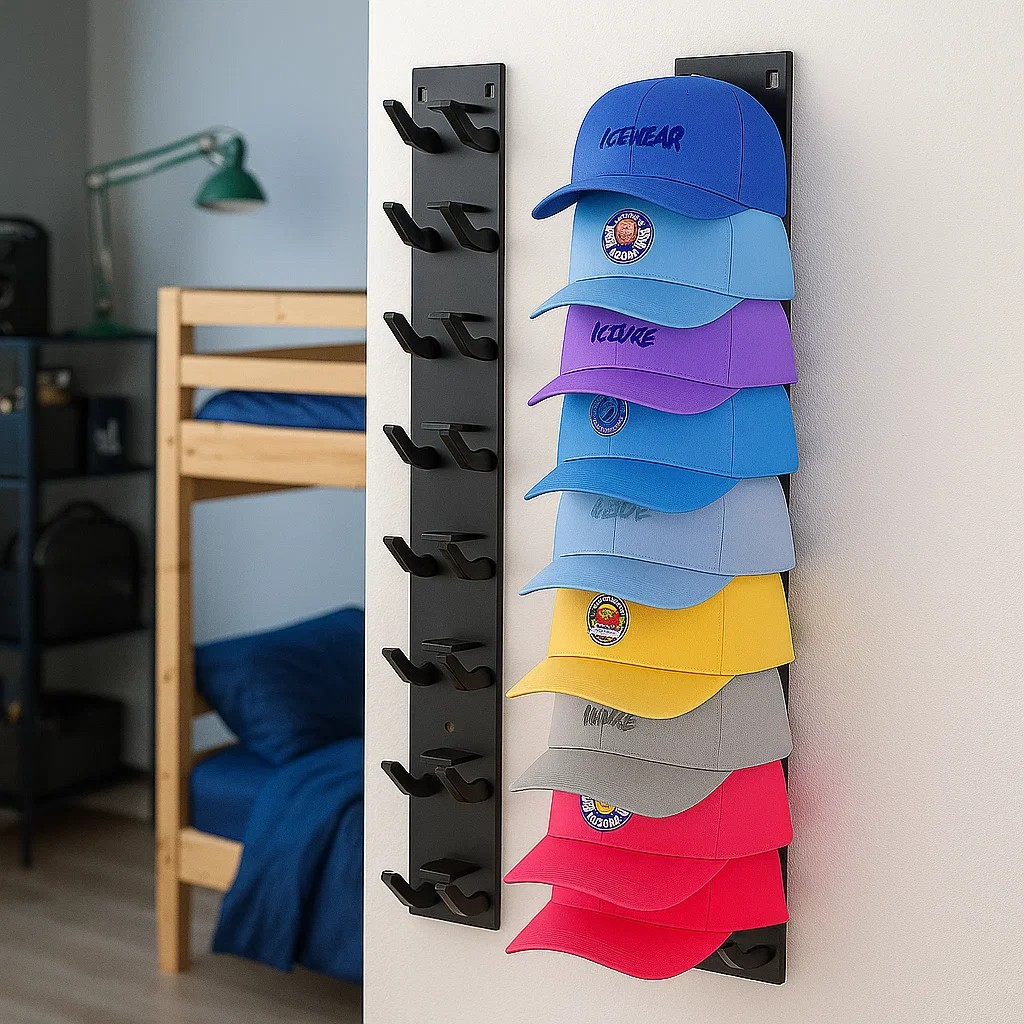 Wall-Mounted Cap Organizer – Multi-Layer Hat Rack Holds Up to 18 Caps