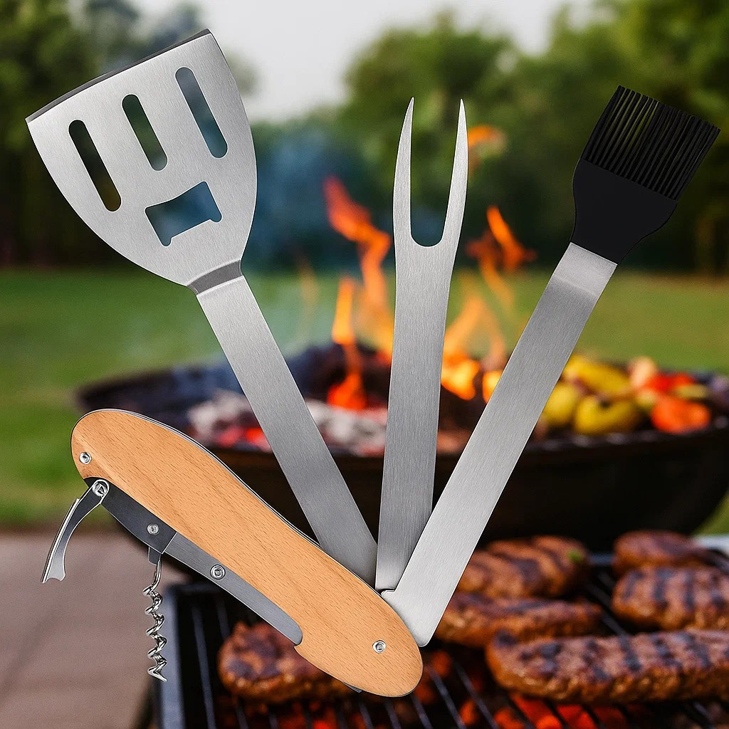 Folding BBQ Tool Set 5-in-1 – Stainless Steel Multi-Purpose Grill Utensils for Outdoor Cooking