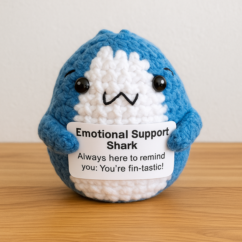 Crochet Shark Doll – Handmade Wool Plush with Positive Message for Ocean-Themed Decor