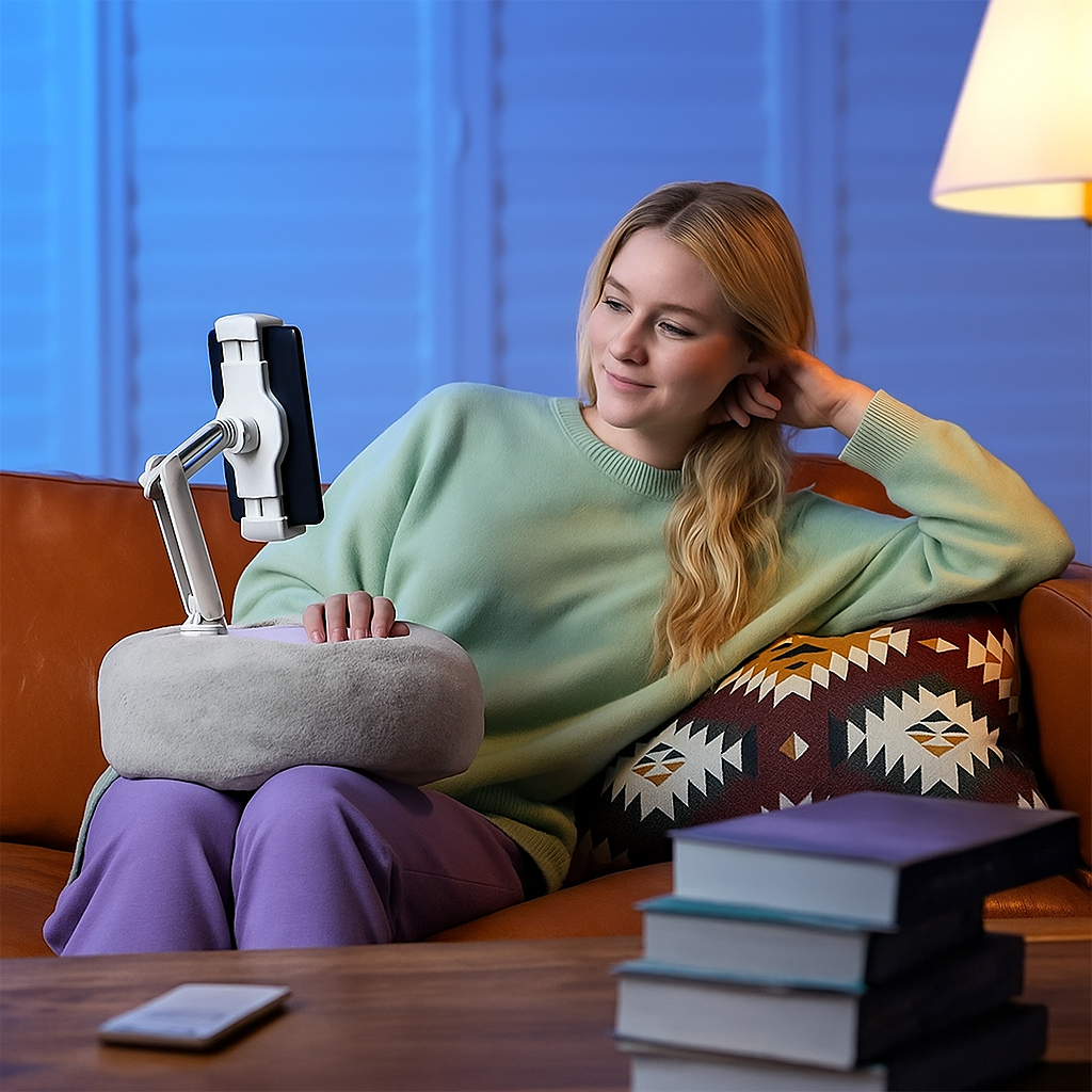 Kindle, Tablet, iPad & Phone Pillow Stand Holder with Snack Bowl – Ultimate Comfort for Reading & Streaming!