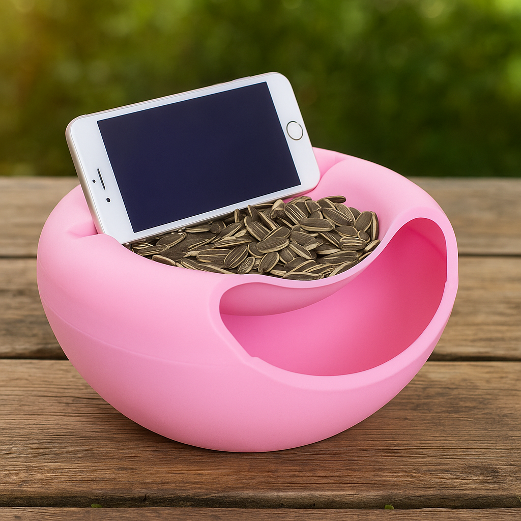 Multi-Purpose Dual-Layer Snack Bowl with Phone Holder – Modern Serving Dish for Nuts, Seeds, Candy & Fruit
