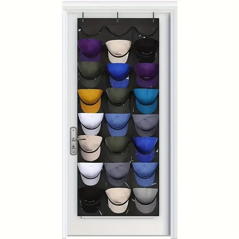 Over-the-Door Hat Rack with 24 Deep Pockets – Cap Organizer & Baseball Cap Holder with 3 Hooks, Visible Storage for Hats & Accessories